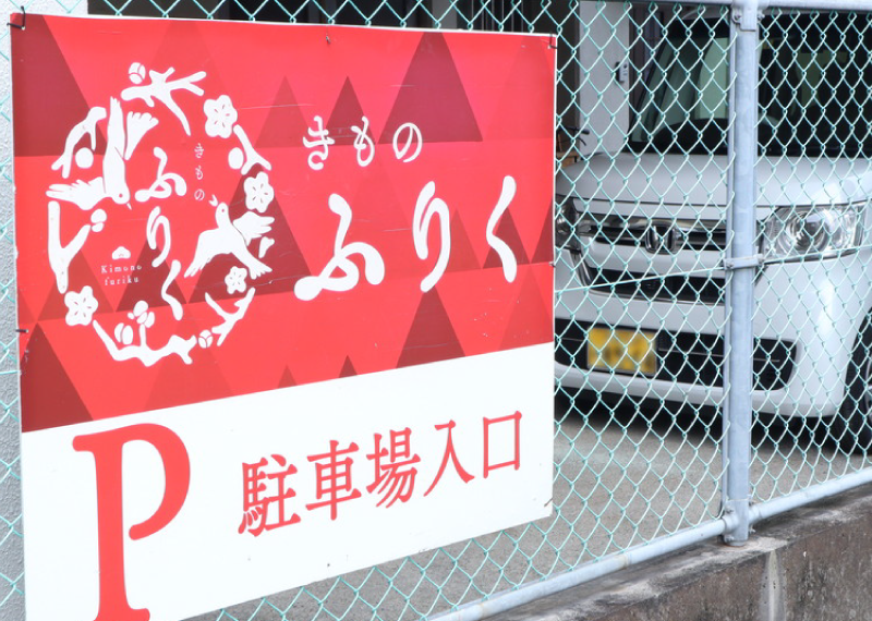 買取・査定の際は店舗前の駐車場をご利用ください。満車の場合は数メートル先のきものふりく駐車場をご利用ください。